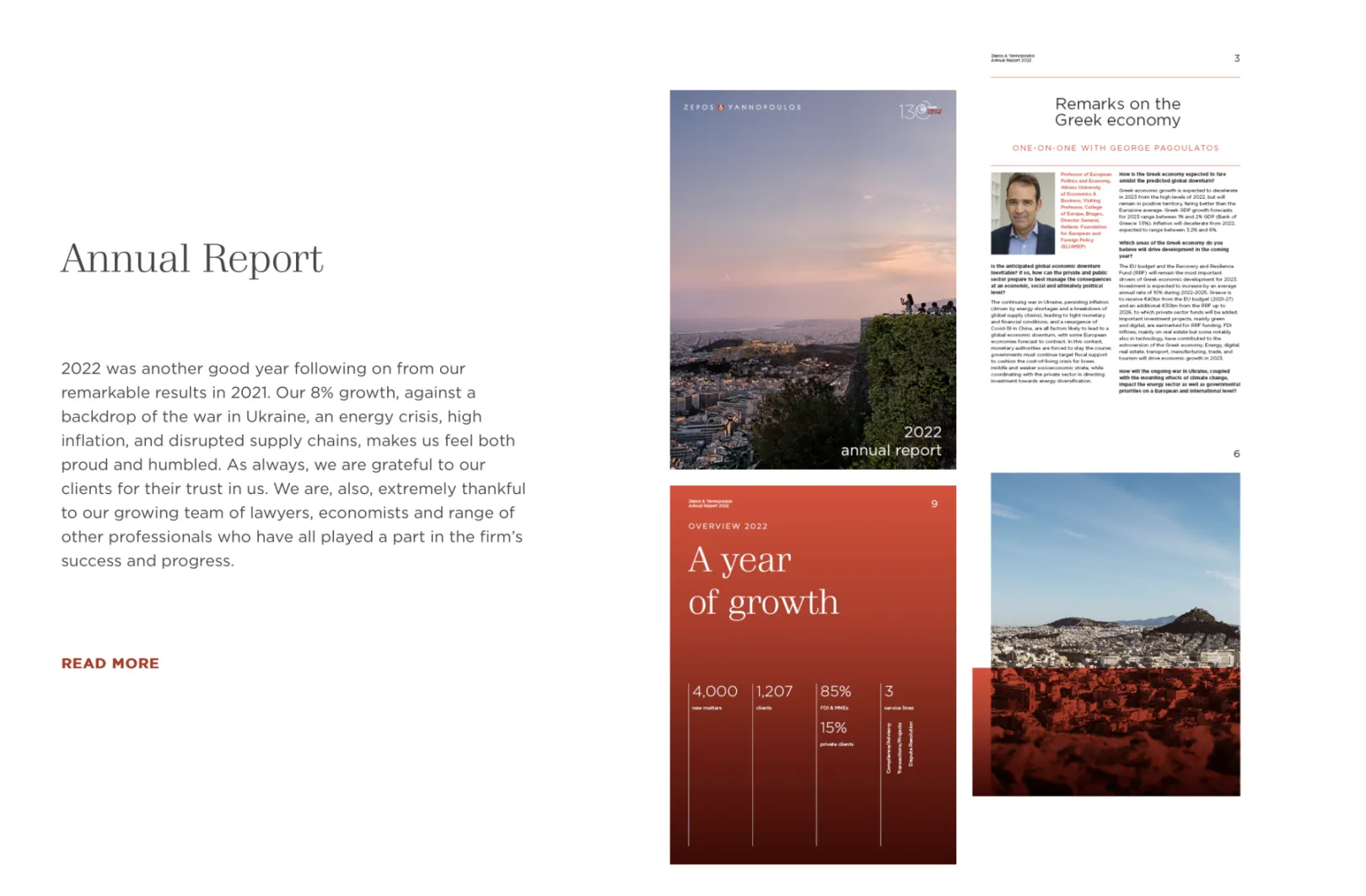 The team at Zepos & Yannopoulos consists of more than 160 professionals, including lawyers and support staff, who provide high-quality legal and tax advisory services. The firm is highly ranked in respected legal directories such as Chambers Global, The Legal 500 EMEA, and International Financial Law Review 1000, affirming its standing as a leader in the Greek legal market
